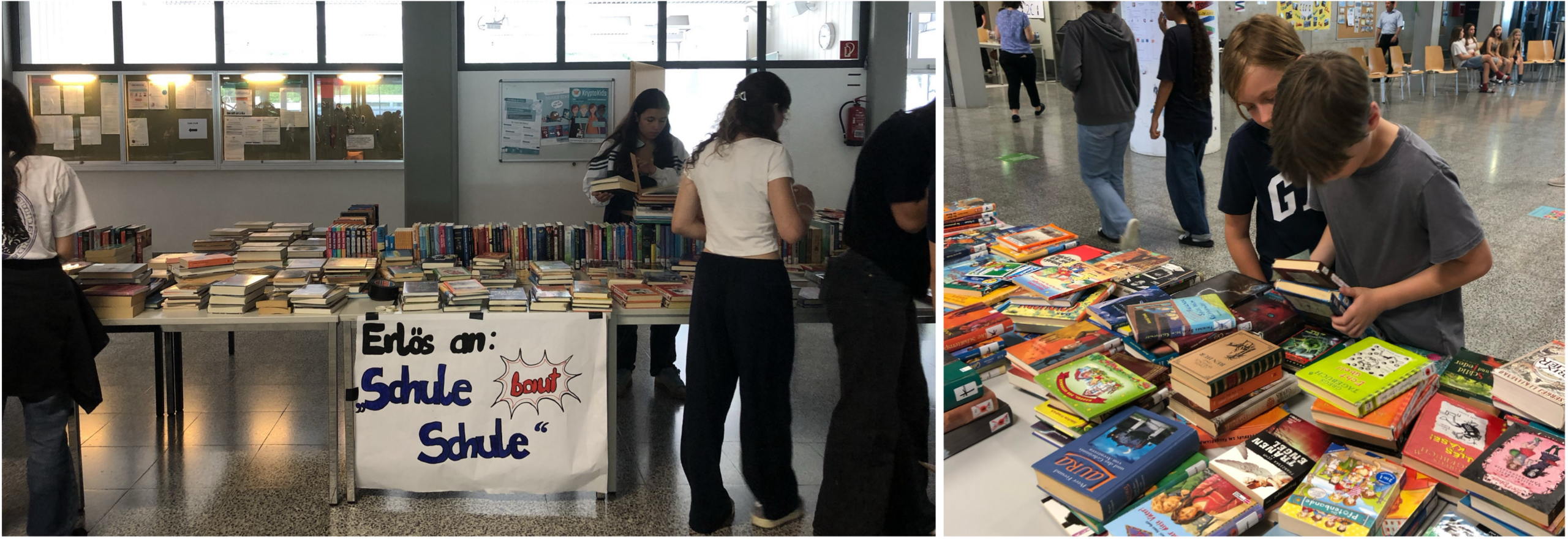 Am Ende des vergangenen Schuljahres haben wir, die Klasse 6a zusammen mit unseren Schulbibliothekarinnen, Mag. Anita Frei (Klassenvorstand der 6a) und Mag. Sabine Gruber, im Rahmen des SDG-Festes am Gymnasium Feldkirch einen Bücherflohmarkt organisiert. Wir haben mehrere hundert ausgemusterte Bücher aus unserer Schulbibliothek – die meisten aus dem Bereich Kinder- und Jugendliteratur, aber auch Sachbücher – dekorativ aufgelegt und für 1,-- bis 2,-- € zum Verkauf angeboten.