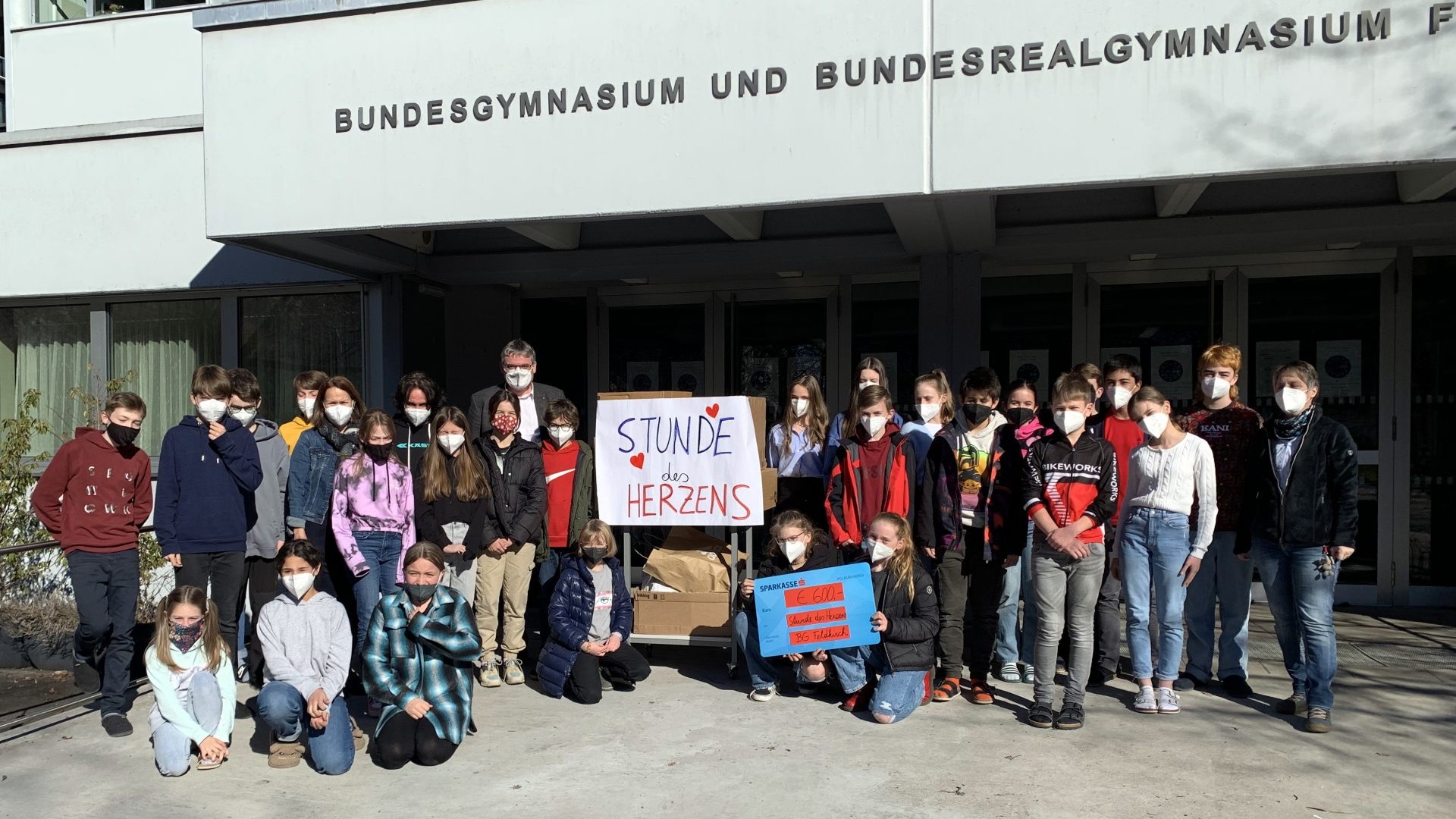 Am Gymnasium Feldkirch sammelten die Klassen 1E, 2D und 4B durch den Verkauf von Kuchen und Werkstücken, betreut von Frau Mag. Anita Frei und Frau Mag. Erika Stecher-Fuetscher, Geld, um die Vorarlberger Kinderhilfsorganisation "Stunde des Herzens" zu unterstützen.